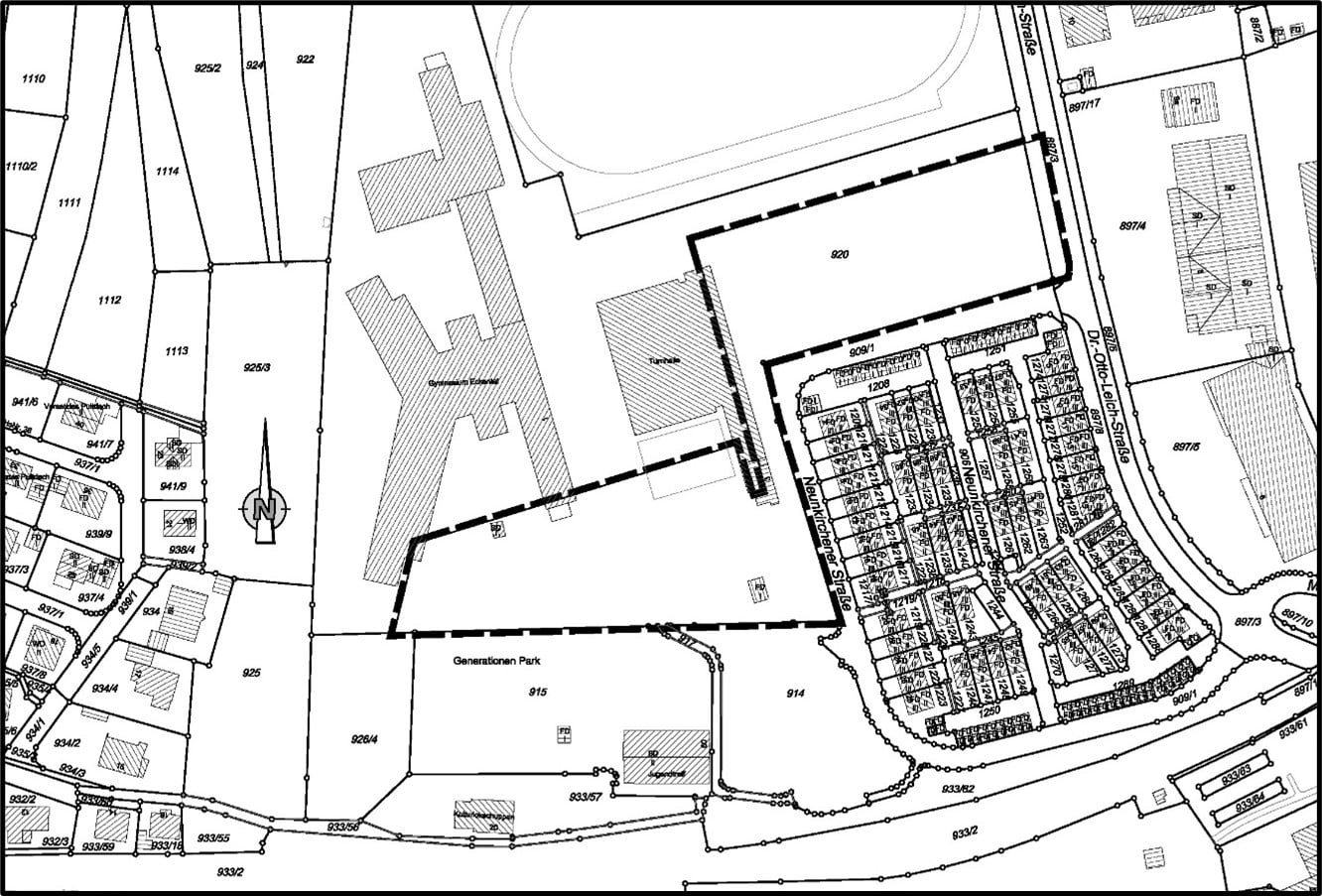 im Norden durch die Grundstücke mit der Fl.-Nr. 920 (Schulgrundstück Gymnasium Eschenau) und 897/7 (Geh-/Radweg der Dr. – Otto – Leich – Straße),