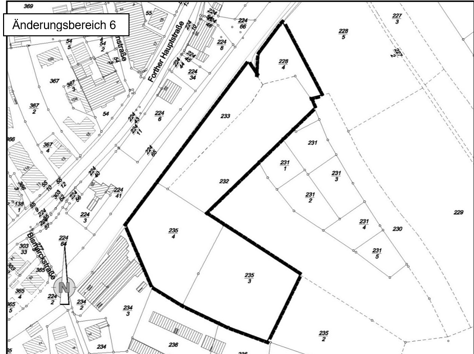 Der „ÄB 6“ befindet sich im Ortsteil Forth, östlich der Bismarckstraße, südlich der B 2 (Forther Hauptstraße), direkt südlich der Bahnlinie 5920 Nürnberg Nordost – Gräfenberg. Der Geltungsbereich des umfasst eine Fläche von ca. 1,11 ha und beinhaltet voll- oder teilflächig (TF) die Grundstücke mit den Fl.-Nr. 228/4, 232 (TF), 233, 235/3 und 235/4 (alle Gemarkung Forth).
