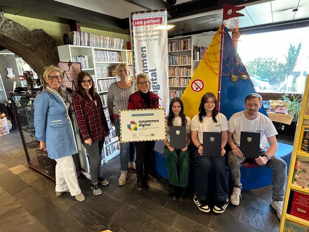 Für Menschen, die Probleme mit Handy, Tablet oder Computer haben, ist sie inzwischen eine feste Anlaufstelle: die zusammen.digital-Beratungstheke in der Eckentaler Gemeindebücherei. An jedem Freitagnachmittag von 15.30 bis 17 Uhr (außer in den Schulferien) stehen hier junge Ehrenamtliche bereit und klären digitale Fragen – vom Verschicken einer E-Mail bis zum Sortieren der Handyfotos. Zusammen.digital ist ein Projekt des Instituts JFF und gefördert vom Bayerischen Digitalministerium, das zunächst bis Ende März 2024 geplant war. Doch nun ging die gute Nachricht in Eckental ein: Das Projekt geht in eine weitere Runde und wird bis zum 31. März 2025 verlängert.